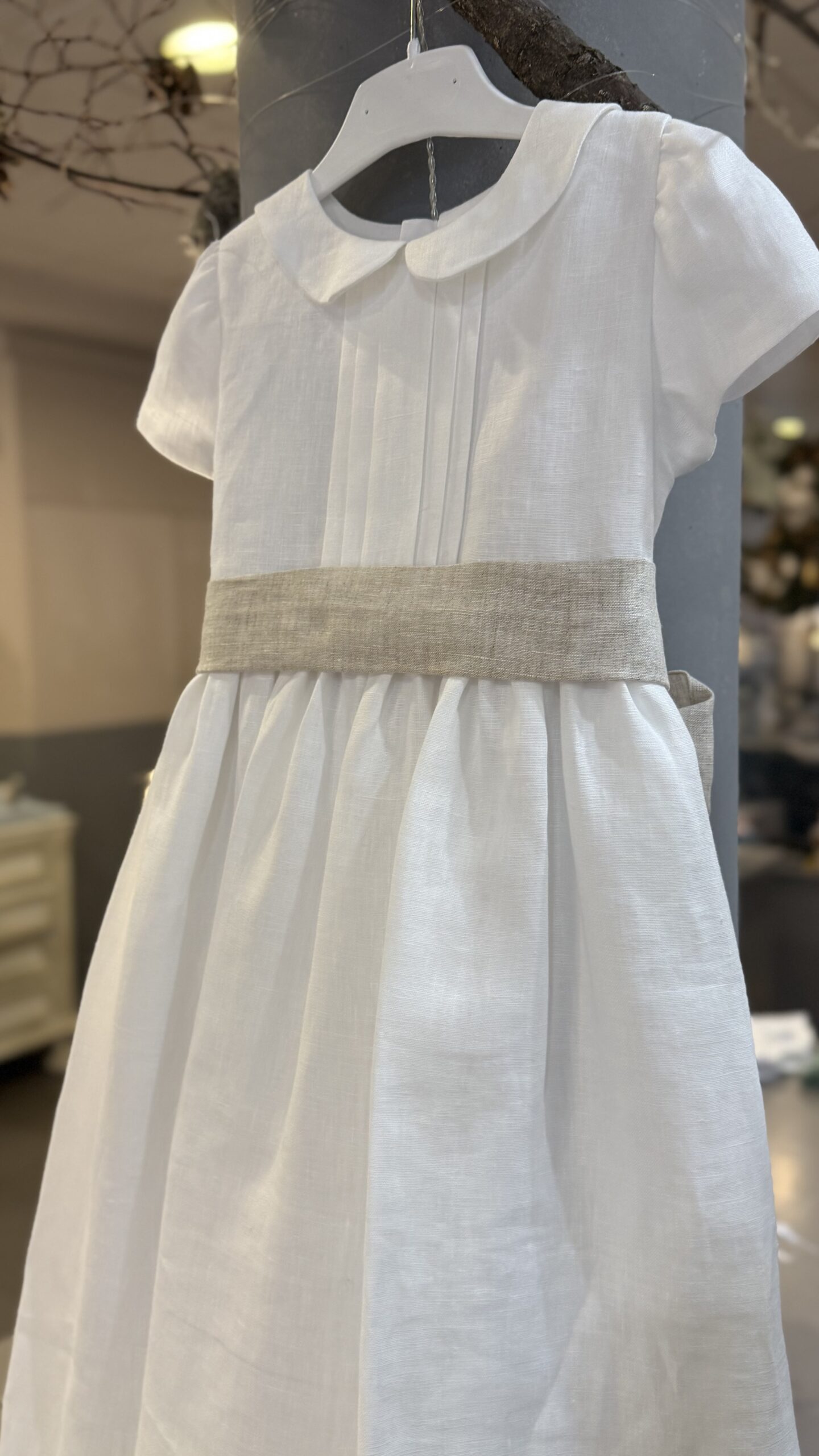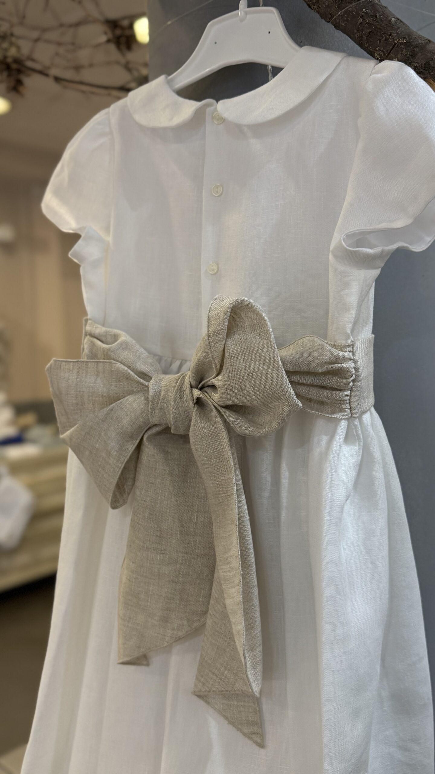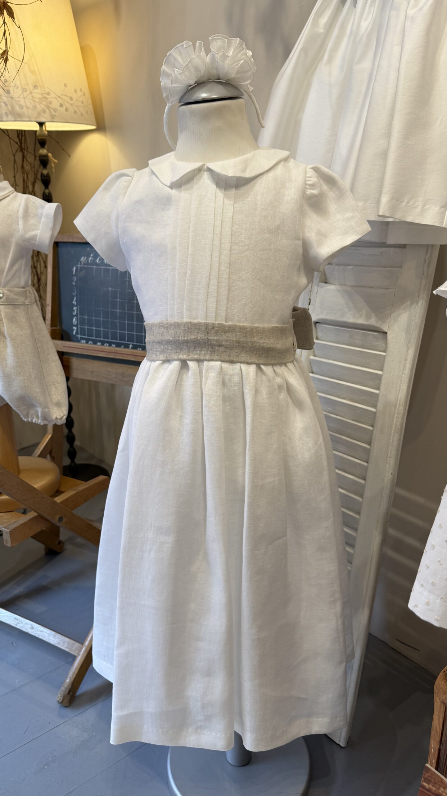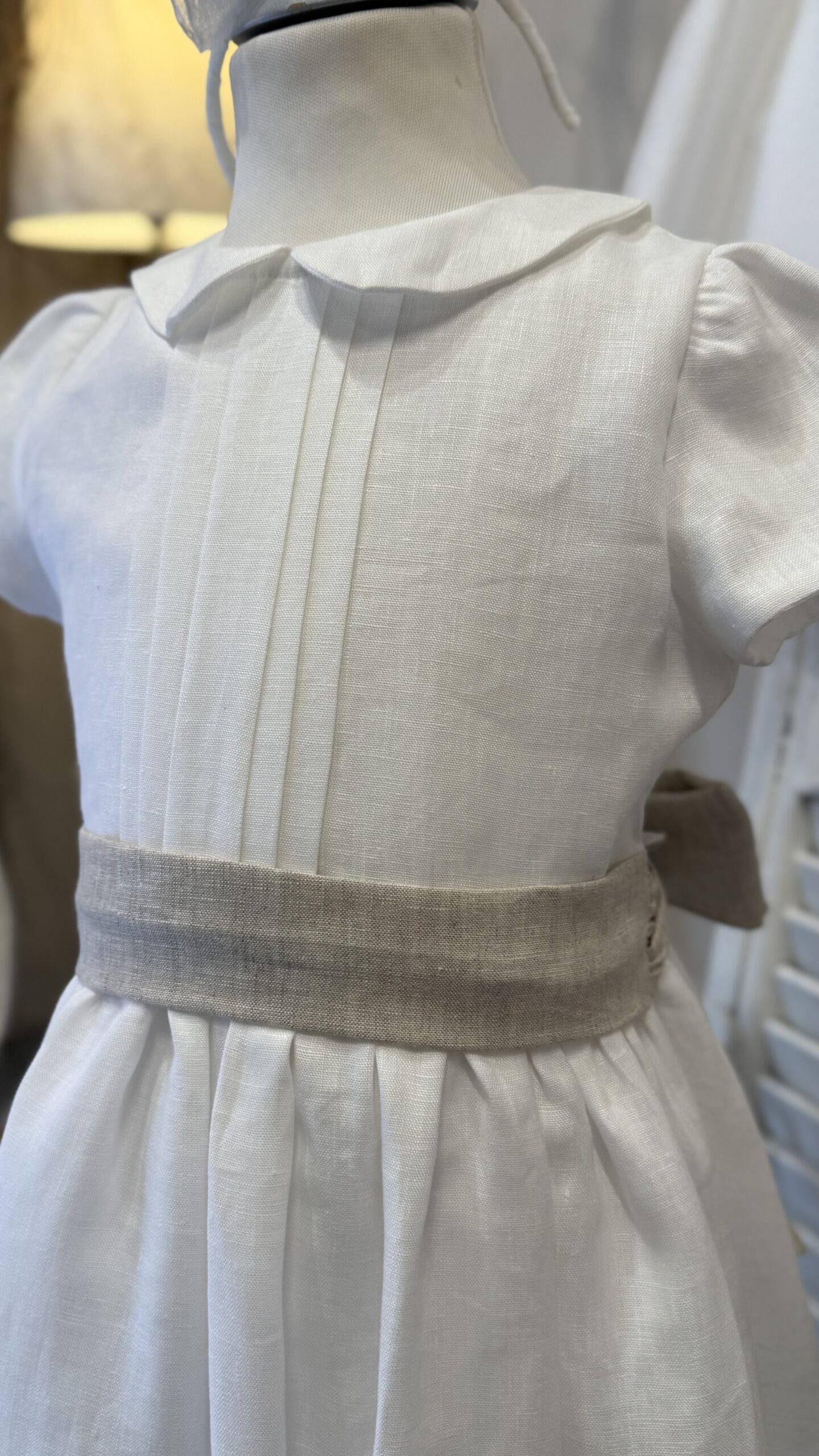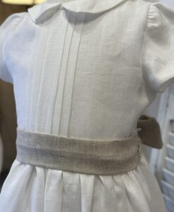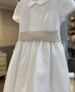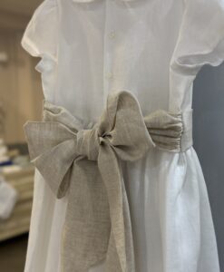 bellissimo abito in puro lino latte con cintura color sabbia , perfetto per cerimonia o comunione , Brand Mariella Ferrari
