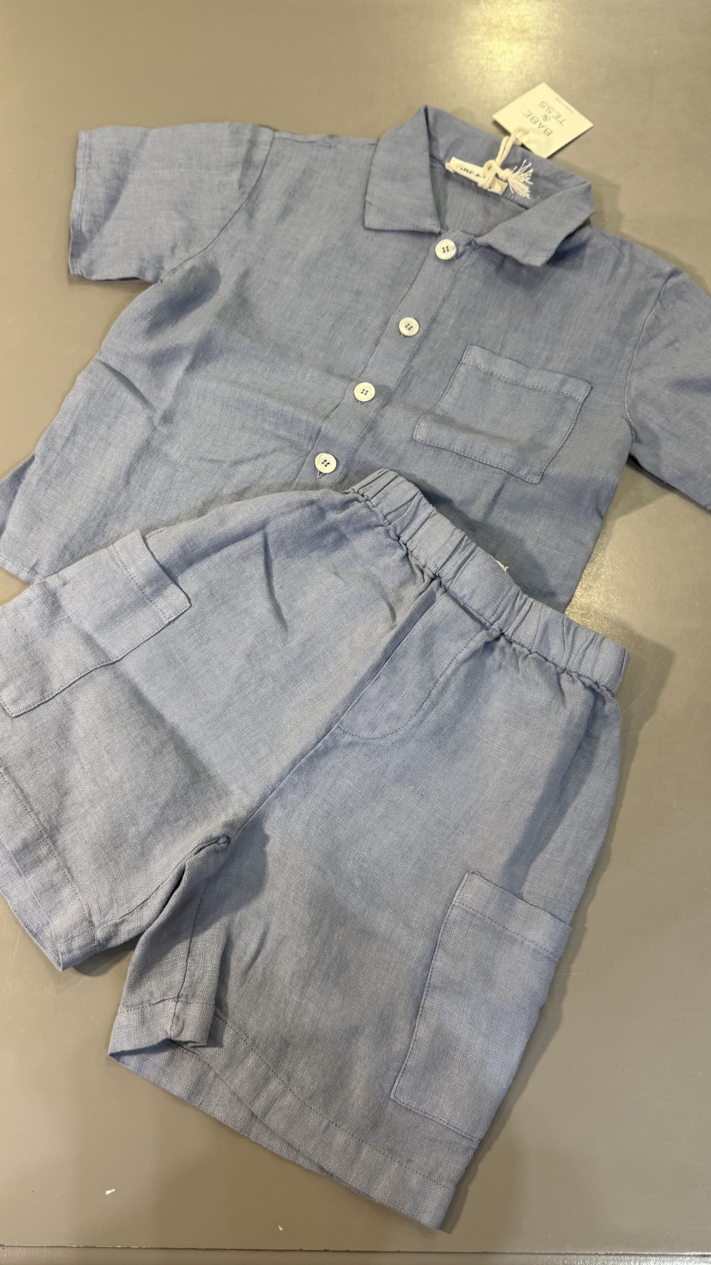 bermuda in lino azzurro , da abbinare alla sua camicia , Brand babeTess