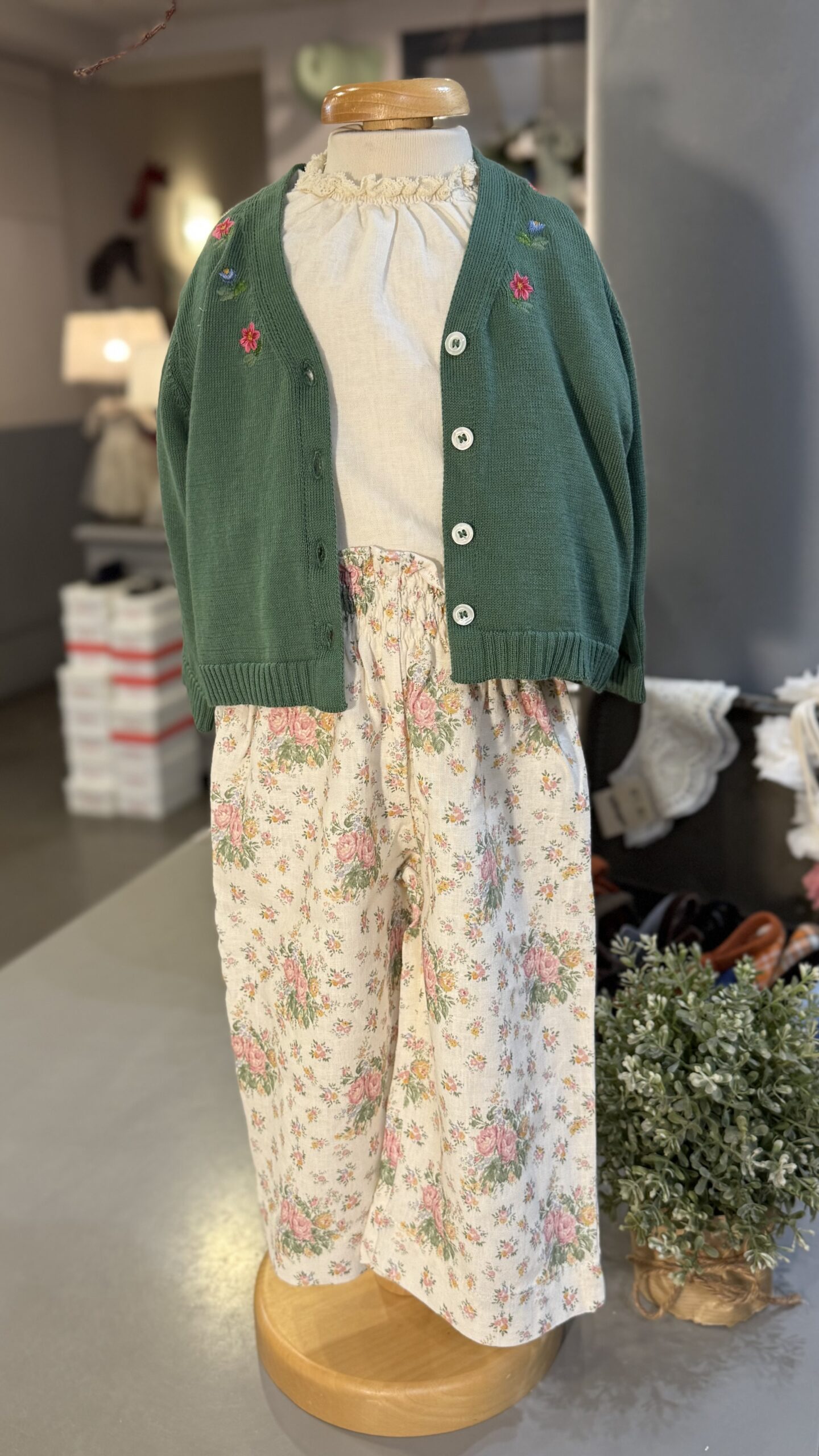 Cardigan in cotone verde con ricami, babeTess