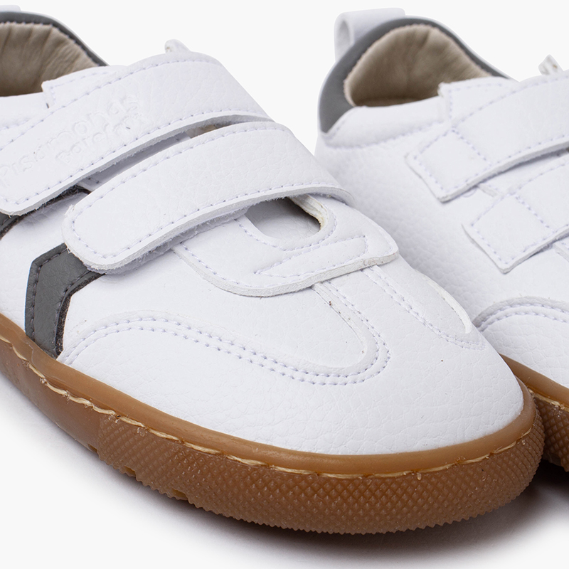 Questo modello di scarpe sportive barefoot ,hanno un ldesign combina funzionalità ed estetica con un look molto moderno e sportivo. Sono sneakers bianche con il piccolo scimmietta Pisamonas inciso, bande laterali a forma di freccia e contrafforte dello stesso colore: un contrasto elegante e casual che ti permetterà di far indossare queste scarpe ai tuoi bambini con qualsiasi outfit, oltre alle loro attività sportive a scuola. Inoltre, sono realizzate in un tipo di microfibra traspirante di alta qualità che imita la pelle naturale e che è super facile da pulire con un semplice panno umido. Hanno una punta stilizzata, ma senza perdere le loro caratteristiche barefoot: ampio spazio nella zona delle dita per permettere loro di muoversi liberamente; suola in gomma antiscivolo, sottile e molto flessibile ma molto resistente; soletta rimovibile e doppia chiusura a strappo, che facilita i bambini a calzarsele da soli, con il logo barefoot inciso su una delle strisce.