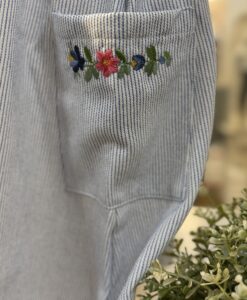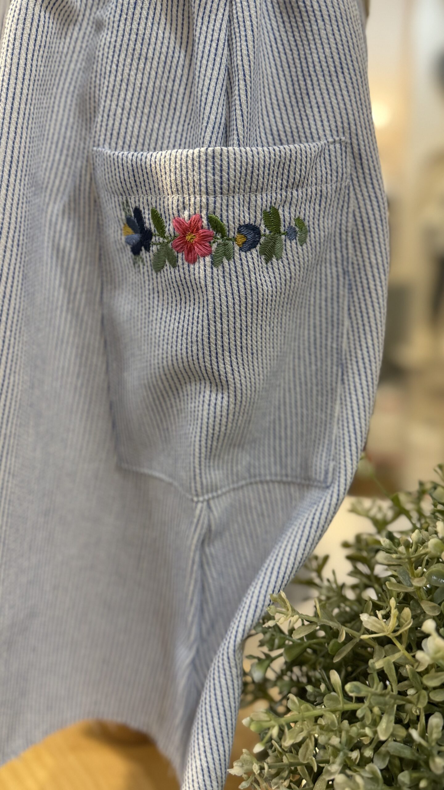 gonna midi a righe azzurre con ricami sulle tasche , elastico in vita . Brand babeTess