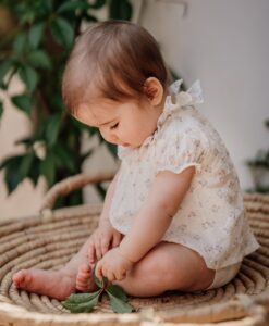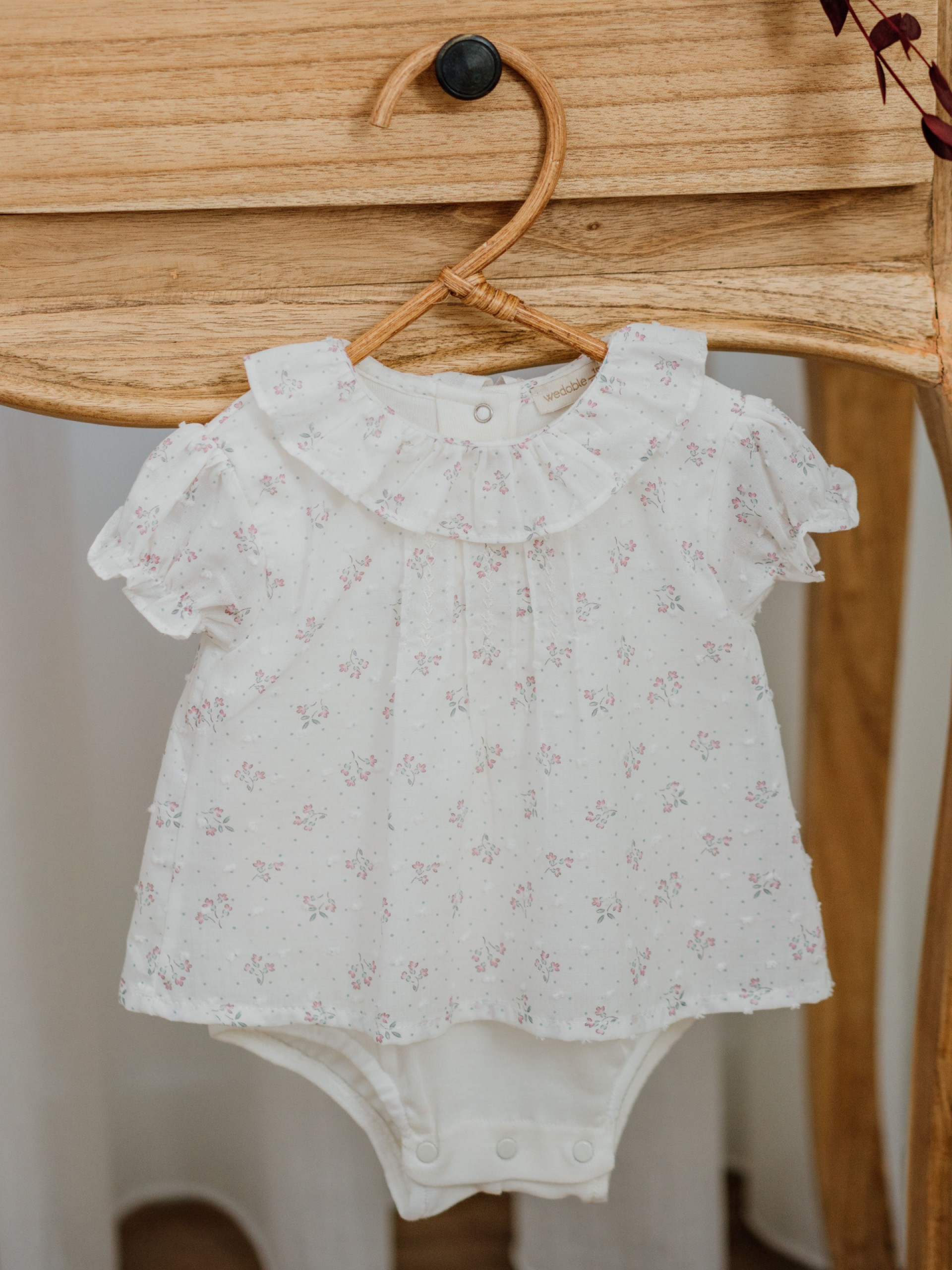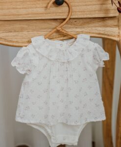 pagliaccetto bianco fiorellini rosa con body incorporato, Wedoble