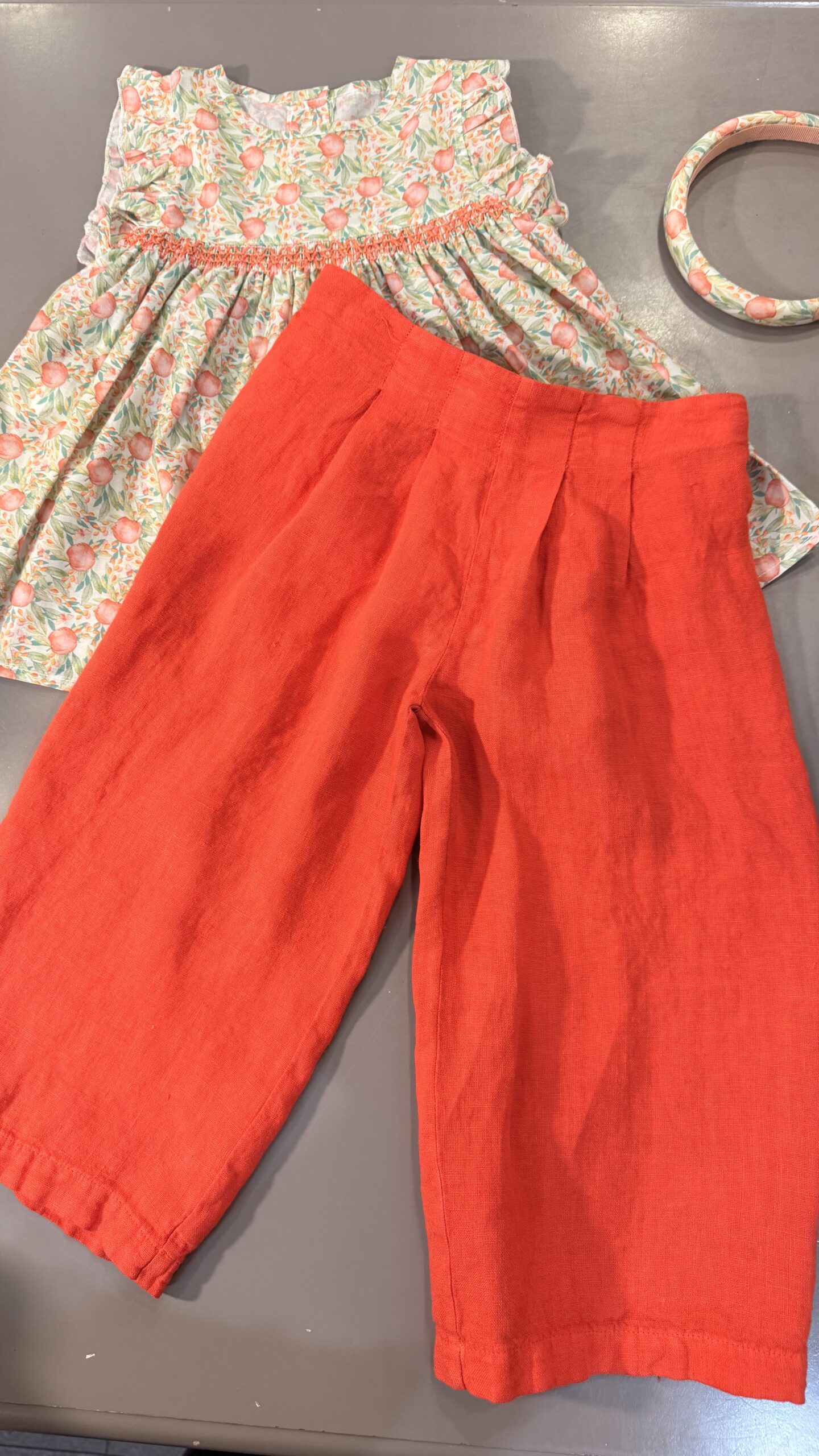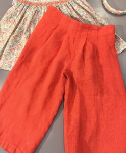 Pantaloni bimba in lino corallo, elasticati in vita, Brand Mariella Ferrari