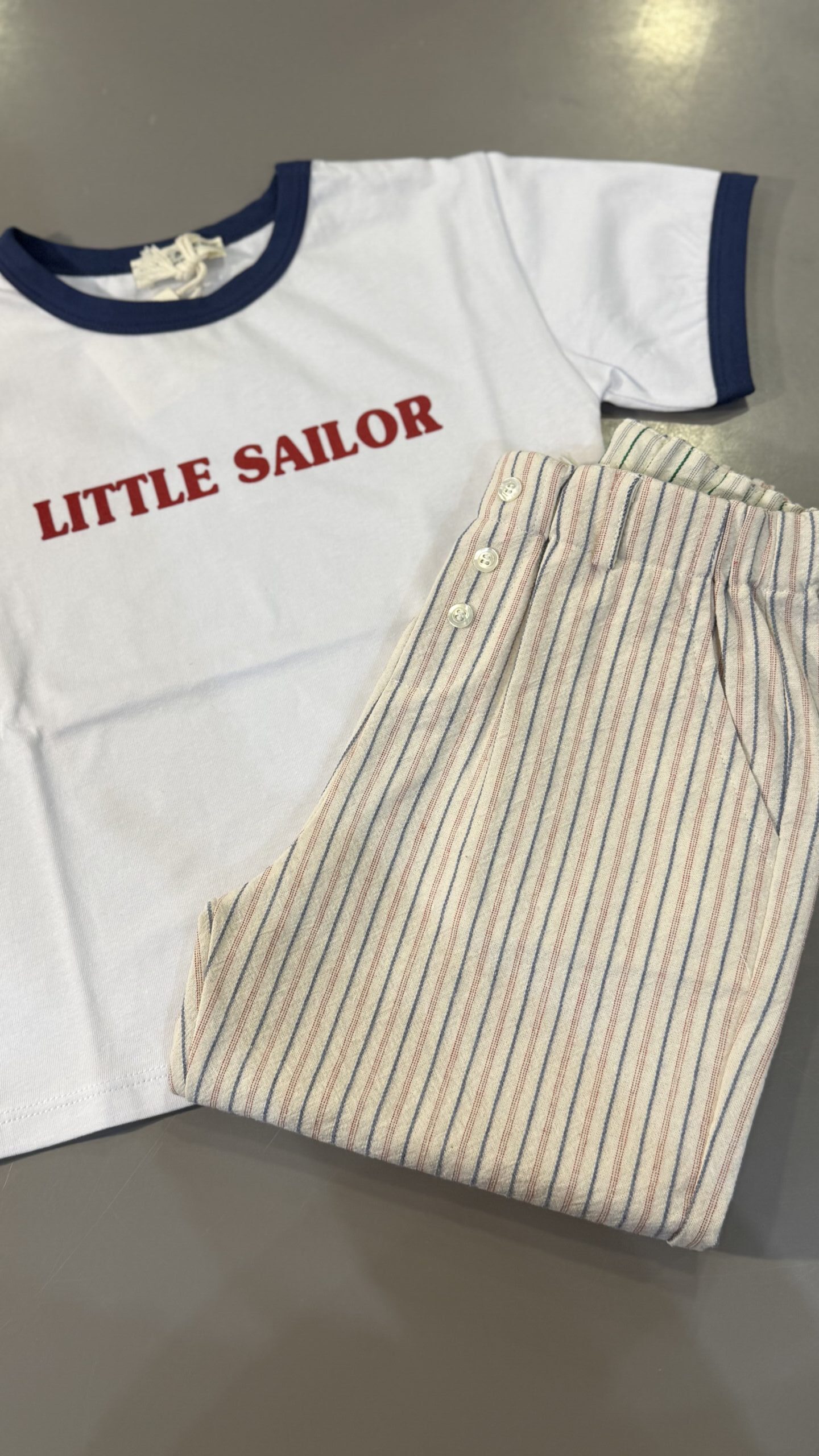 pantalone in cotone a righe azzurre e rosse BabeTess