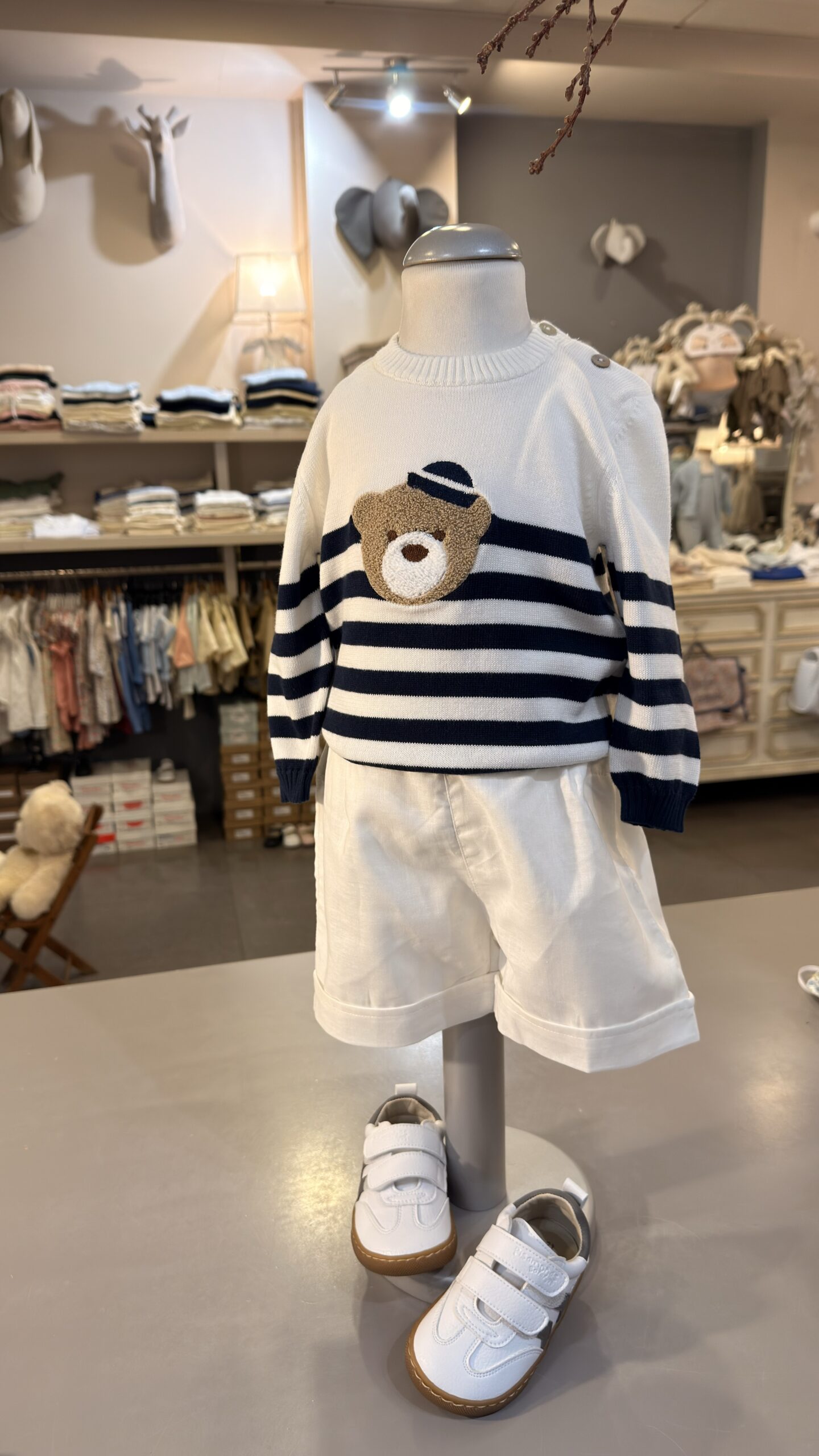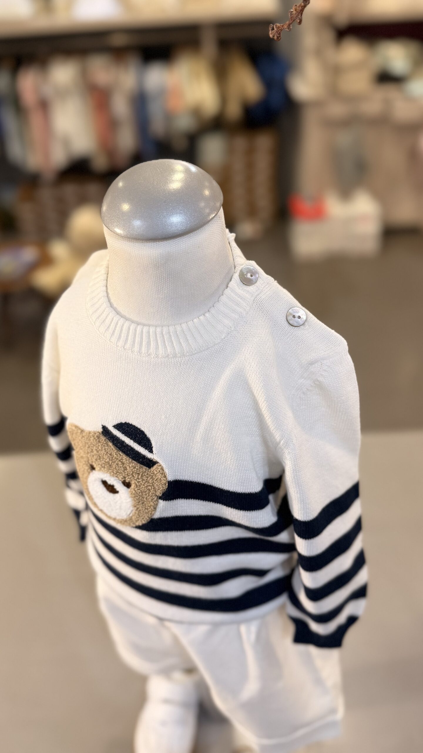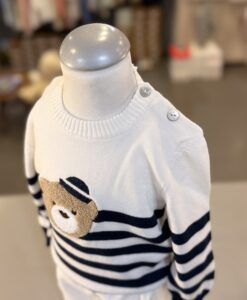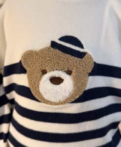 pullover in cotone a righe blu bianco con orsetto applicato, Brand Coccode’