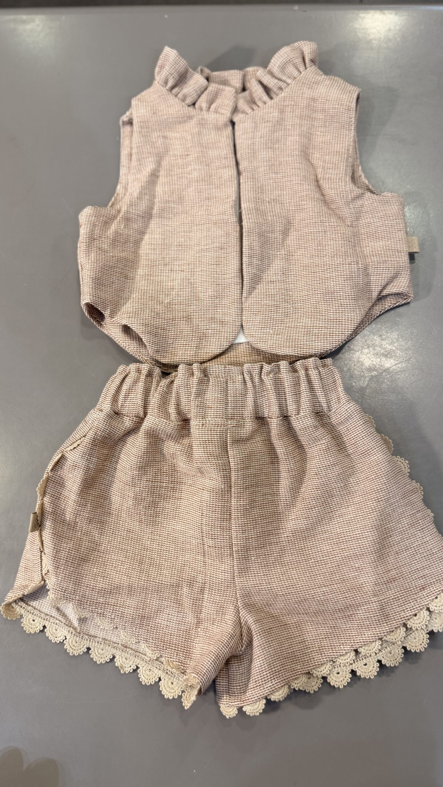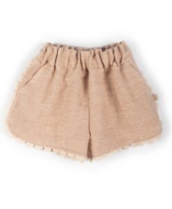 short da bimba in cotone di bamboo marroncini, con pizzetto. da abbinare al gilettino. brand Bamboom