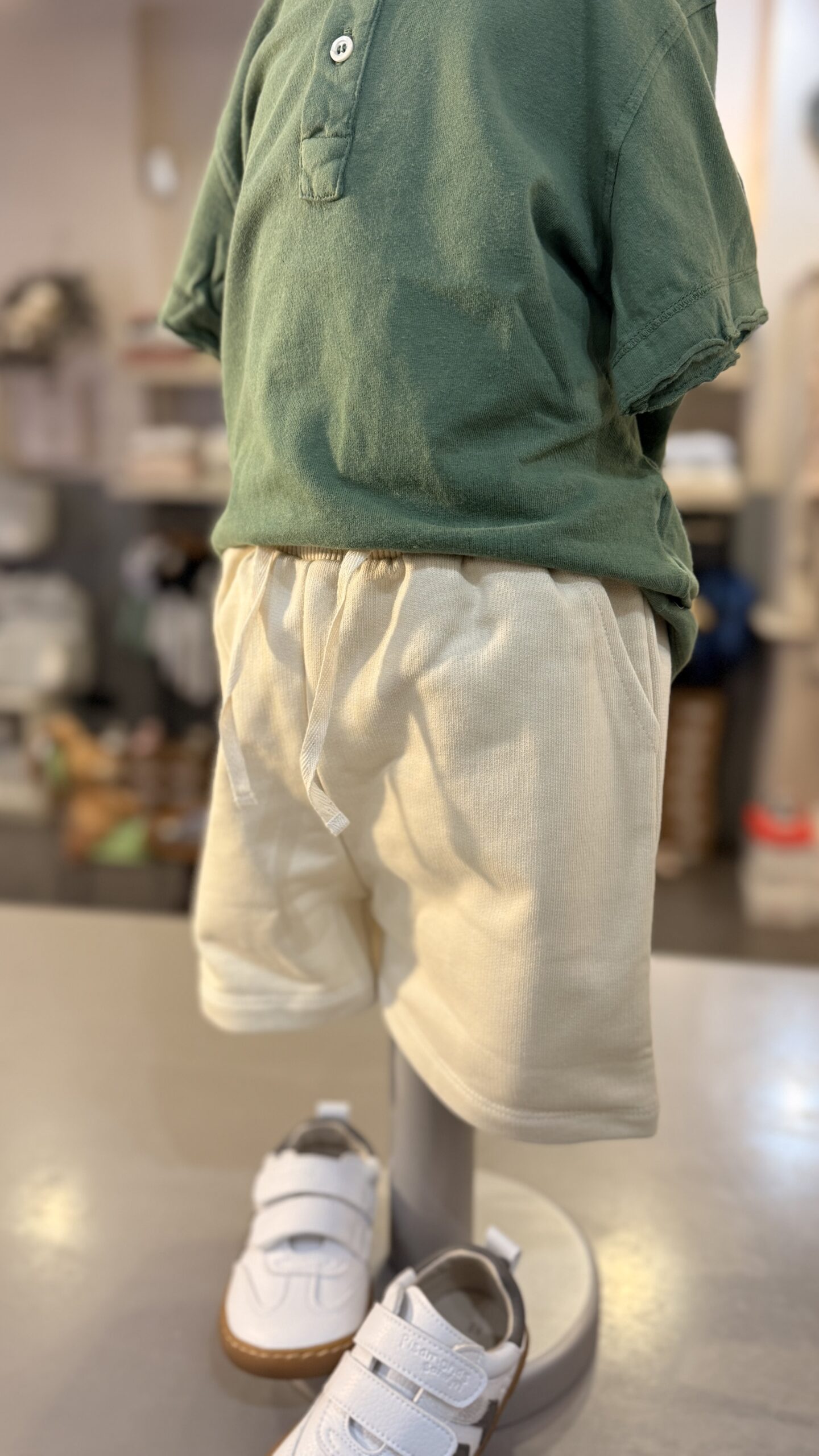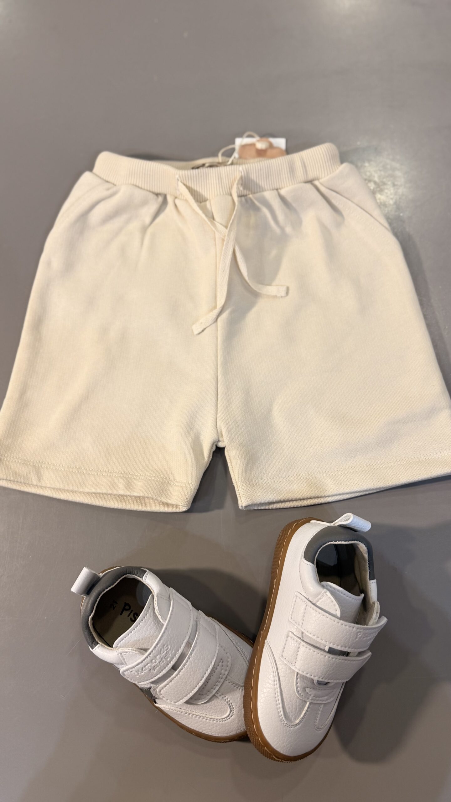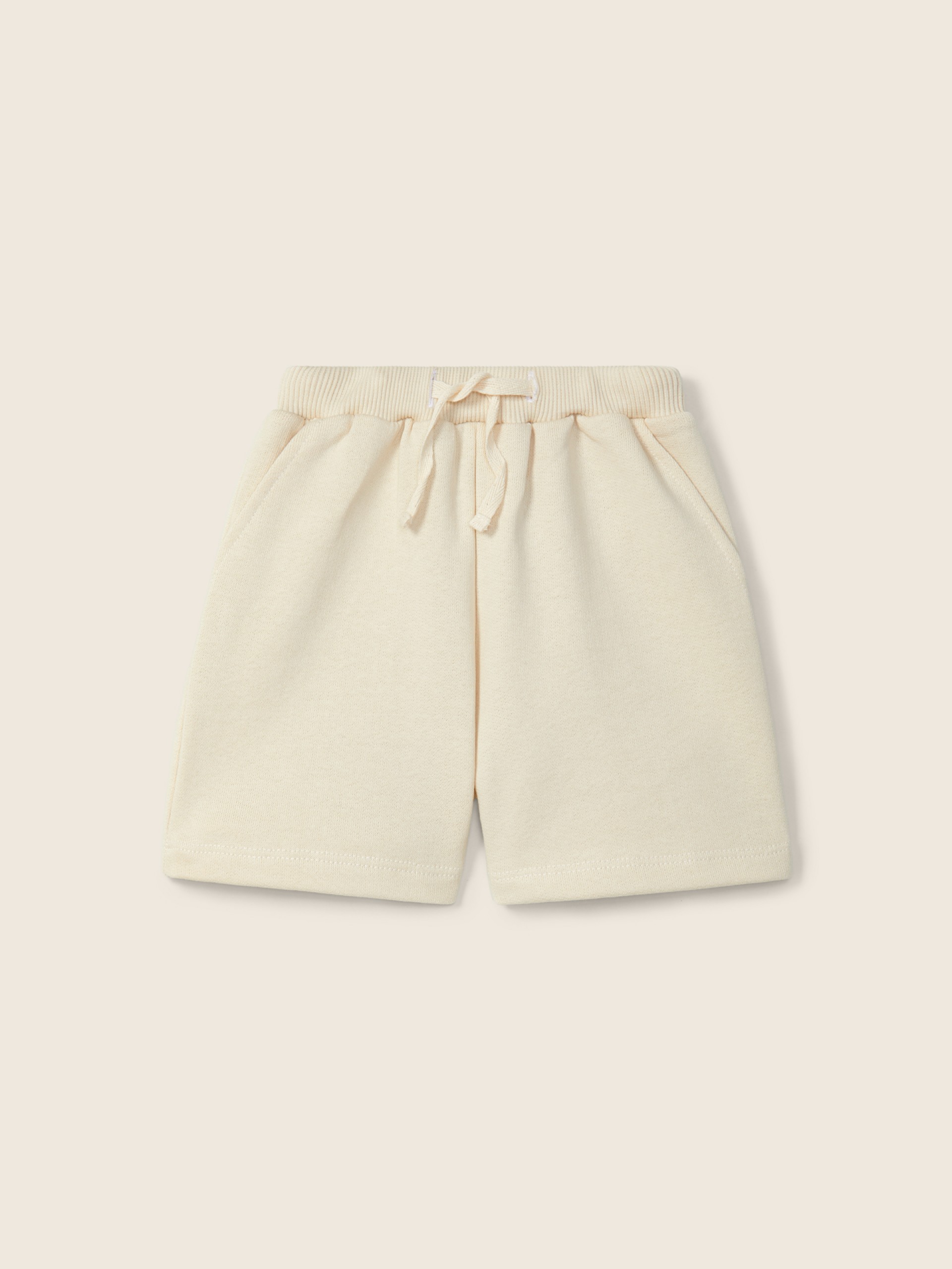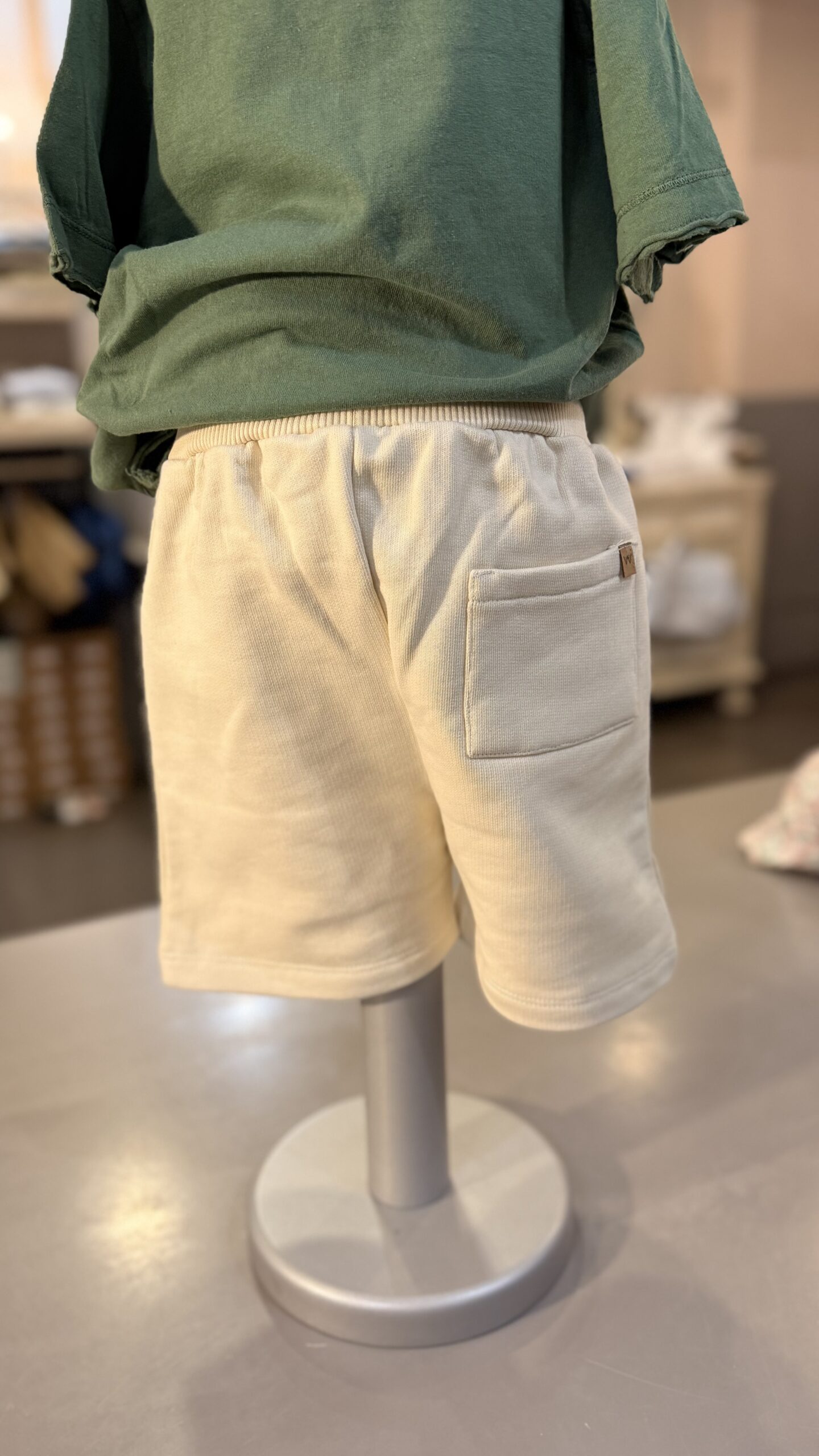 short in felpa garzata color panna con taschina dietro e coulisse regolabile. Brand Wedoble
