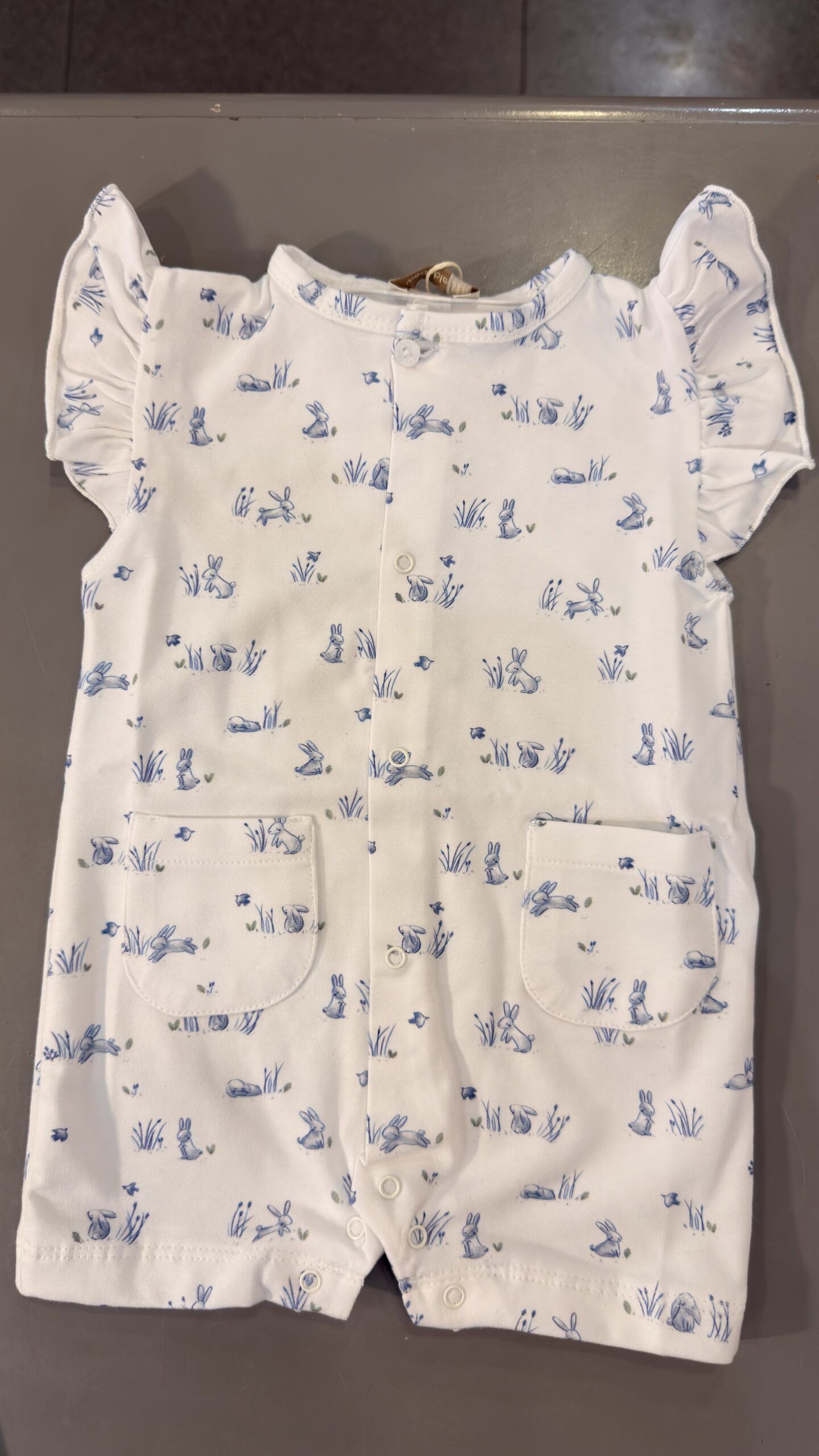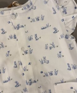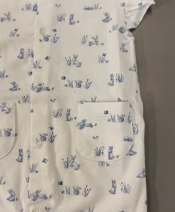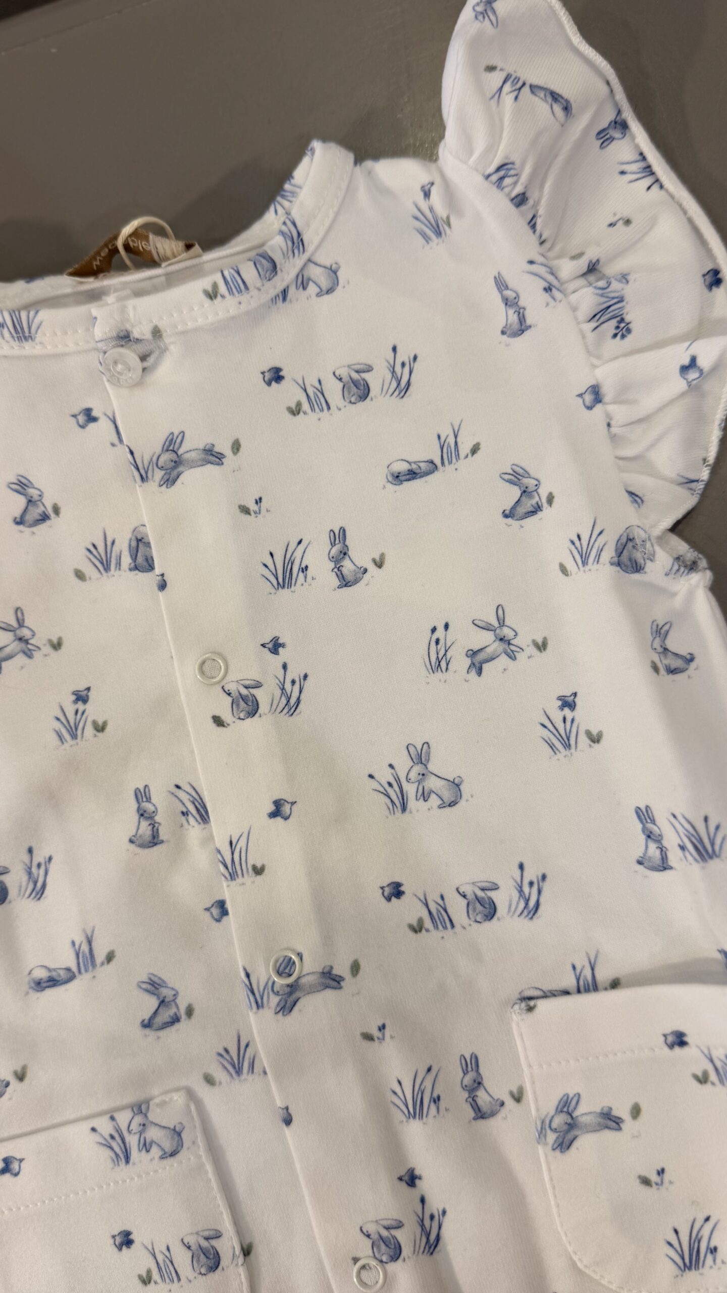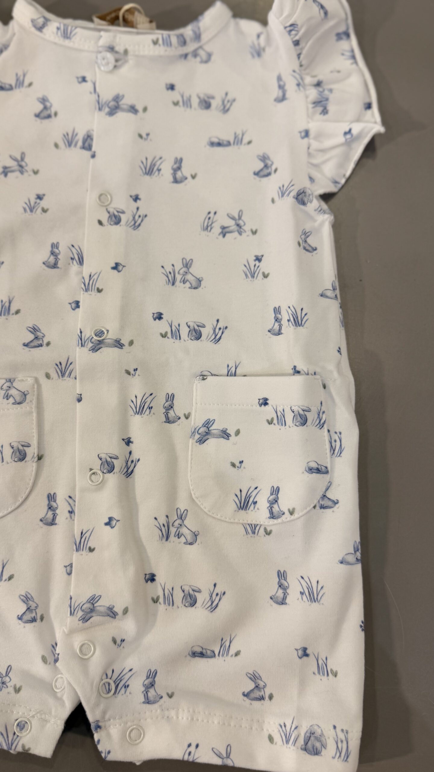 tutina gamba corta e manica aletta , abbottonata sul davanti, stampa coniglietto, Brand Wedoble